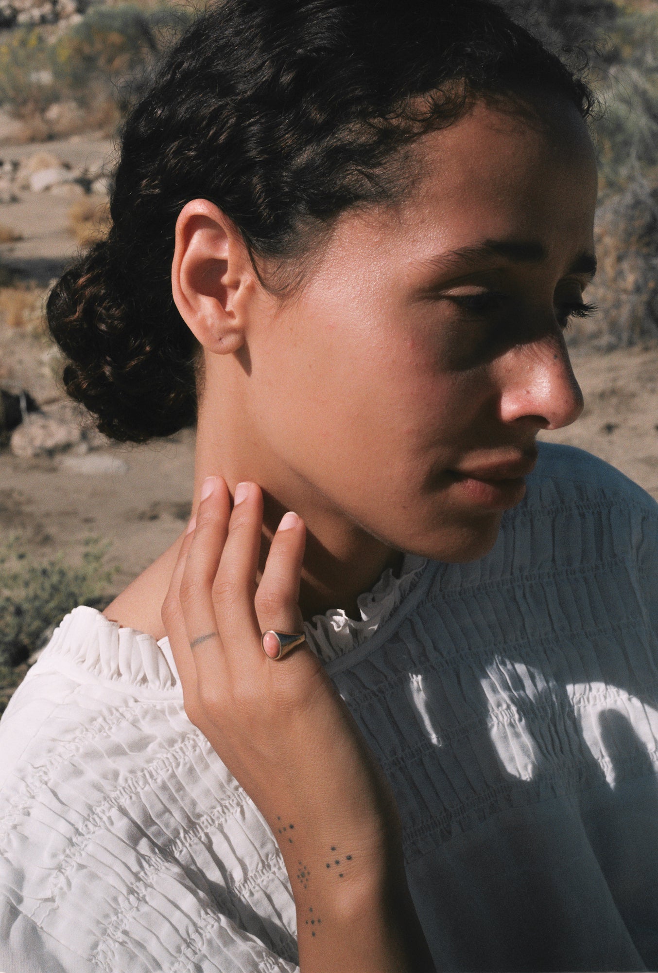 • Load image into Gallery viewer, Antique Gold and Coral Pinky Signet Ring